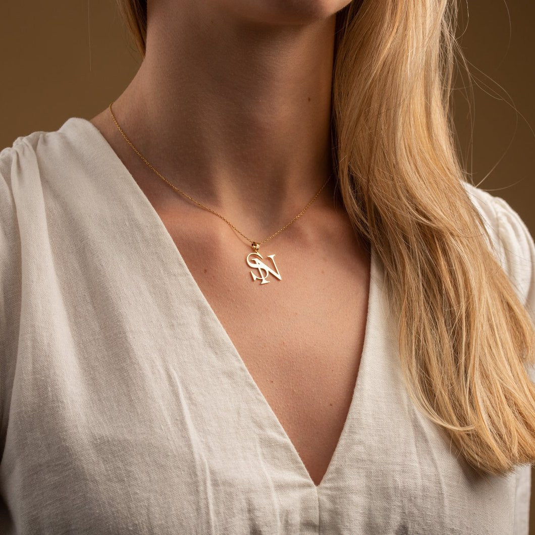 This elegant Double Initials Necklace by Artsy Store is the perfect accessory for any stylish individual. Made with high-quality materials and customizable with your choice of initial, this necklace makes a beautiful and personal statement. Show off your unique style with the Vertical Initial Necklace by Artsy Store.