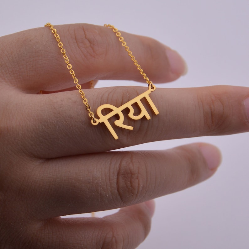 Elevate your style with the Hindi Name Necklace. This unique necklace is personalized with your choice of Hindi name, beautifully crafted in 14k gold. This timeless piece adds a touch of sophistication to any outfit, making it the perfect statement accessory.
