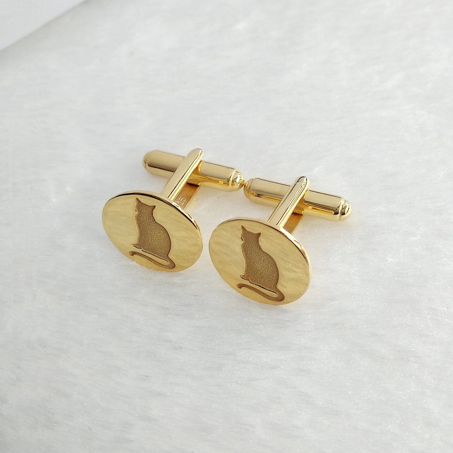 Elevate your style with these Kitty Cat Cufflinks by Artsy Store. Measuring 0.75 inches in diameter, these unique and eye-catching cufflinks showcase a sleek and elegant design featuring a charming cat motif. Perfect for any cat lover, these cufflinks will add a touch of sophistication to any outfit.