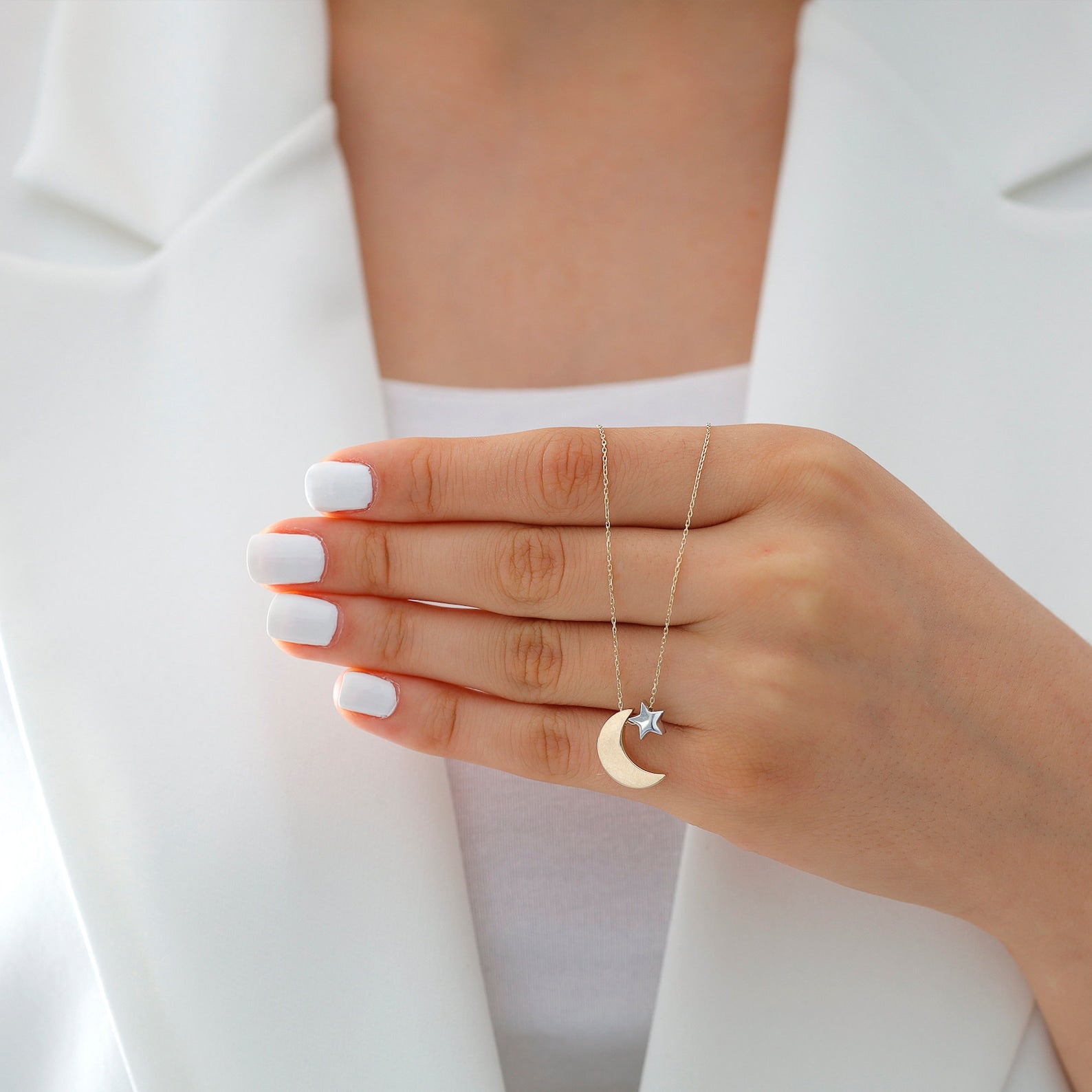 Add a touch of celestial beauty to your outfit with our Moon and Star Necklace. Made from 925 sterling silver, it's a stunning piece that will elevate any look. Perfect for everyday wear or special occasions, this necklace is a must-have for anyone who loves to shine.
